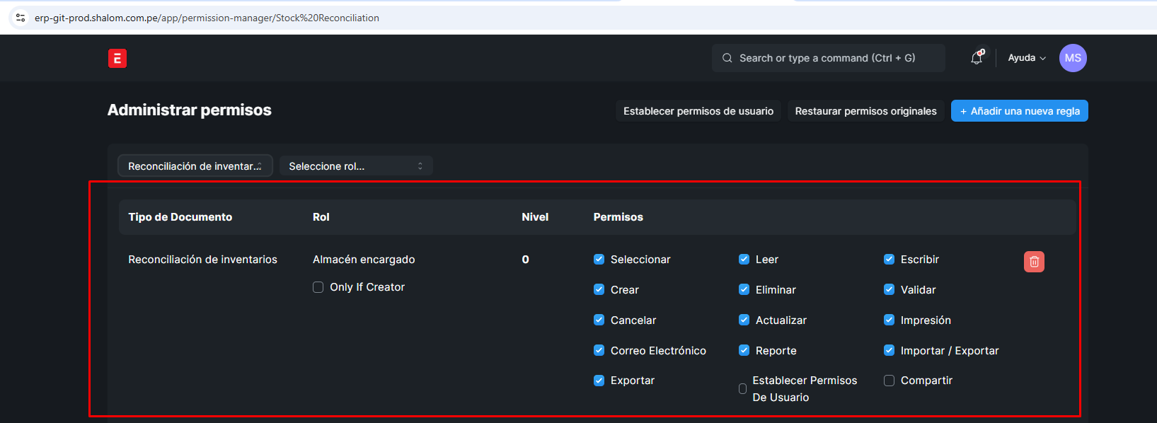 6.2 Roles involucrados: https://erp-git-prod.shalom.com.pe/app/permission-manager/Stock%20Reconciliation
