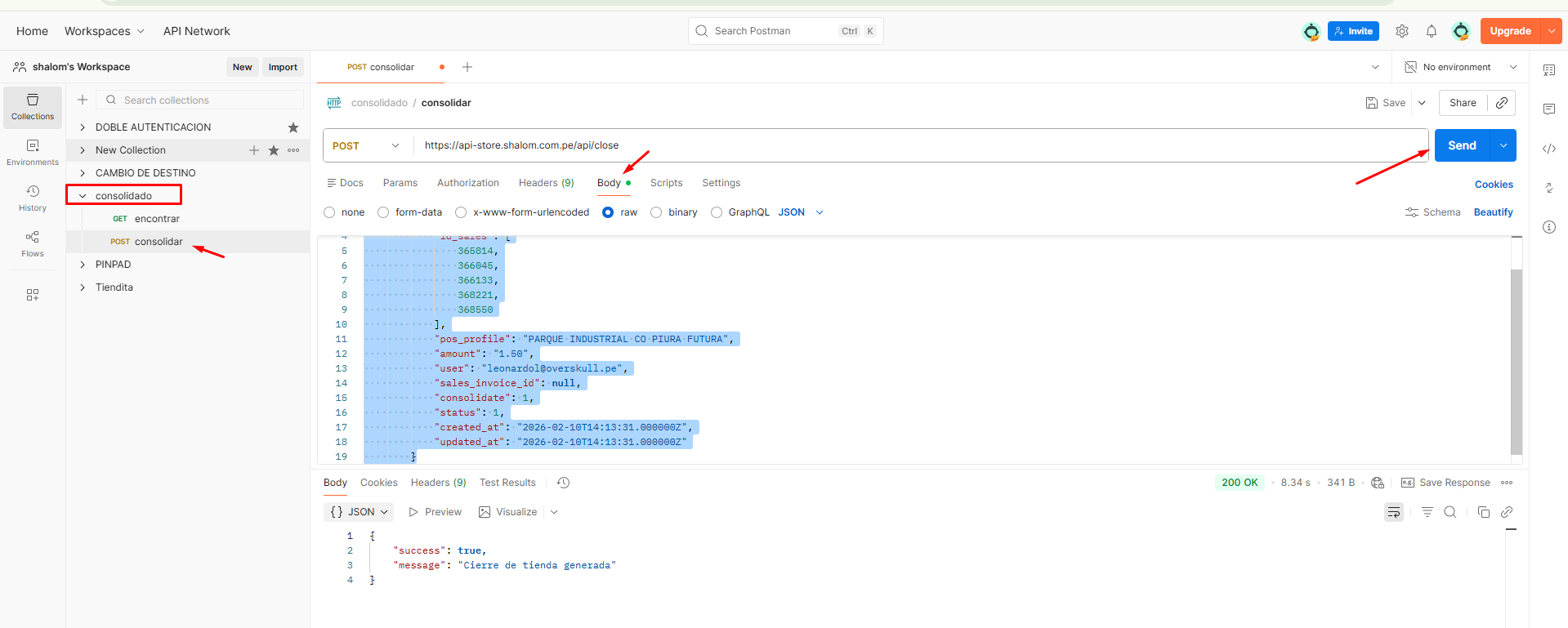 Pegamos lo que copiamos entre corchetes y enviamos y esperamos el mensaje de "cierre de store generado"