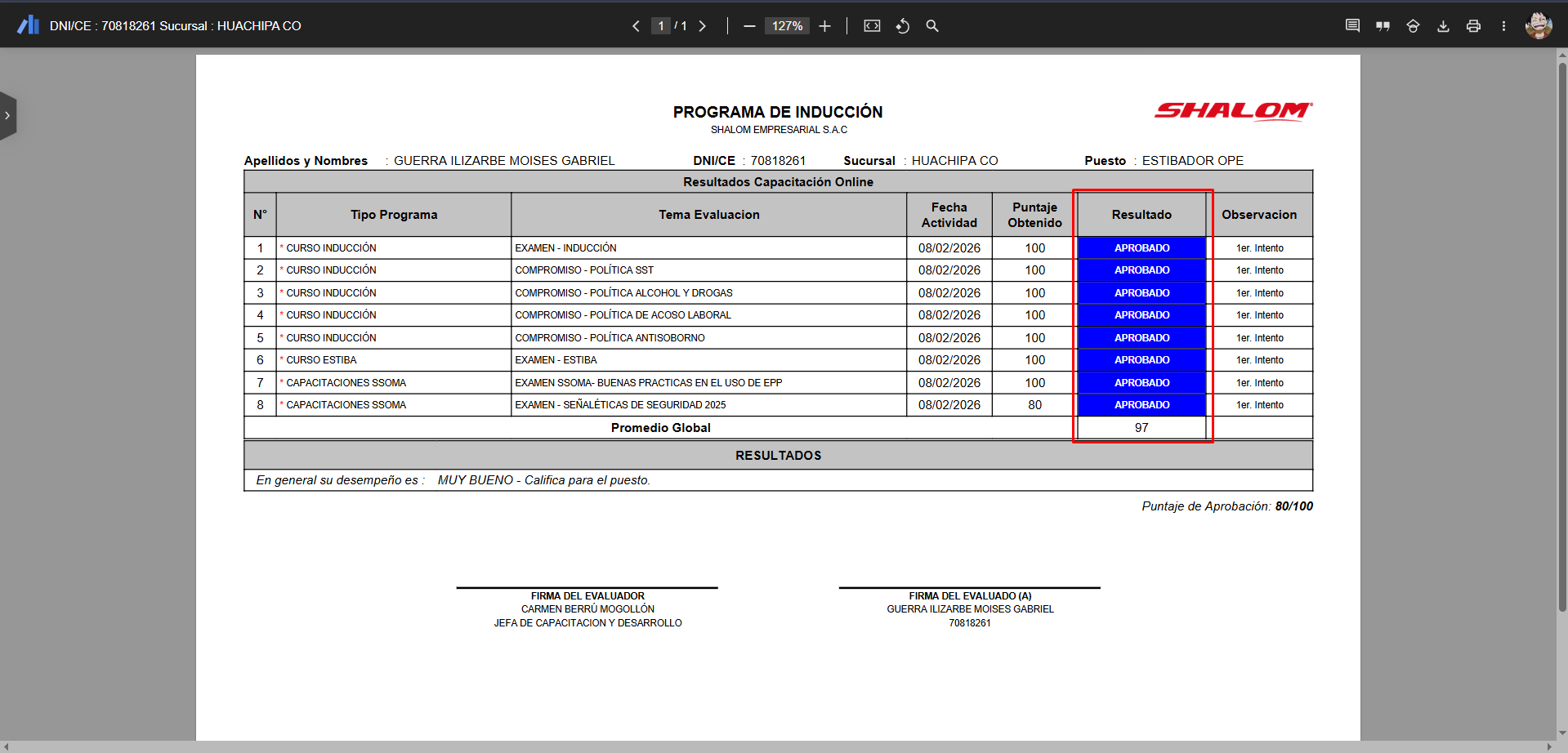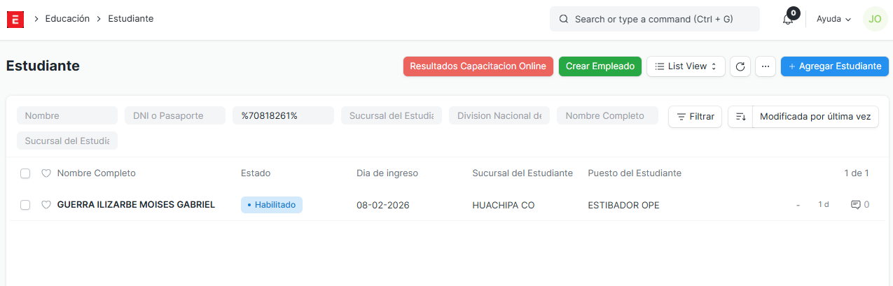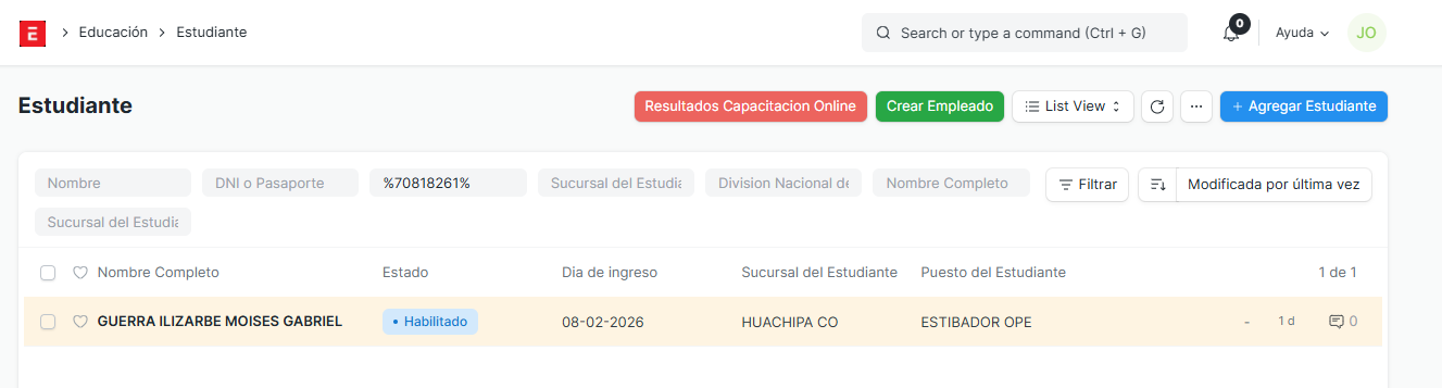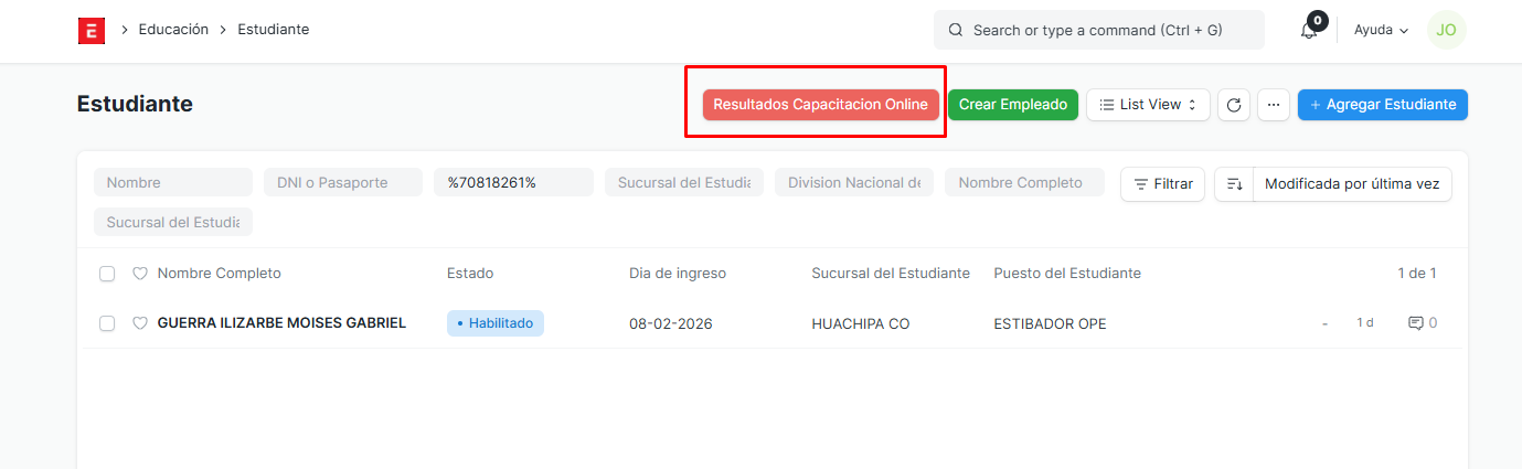 Y verificamos de esta manera que el estudiante haya realizado sus capacitaciones.