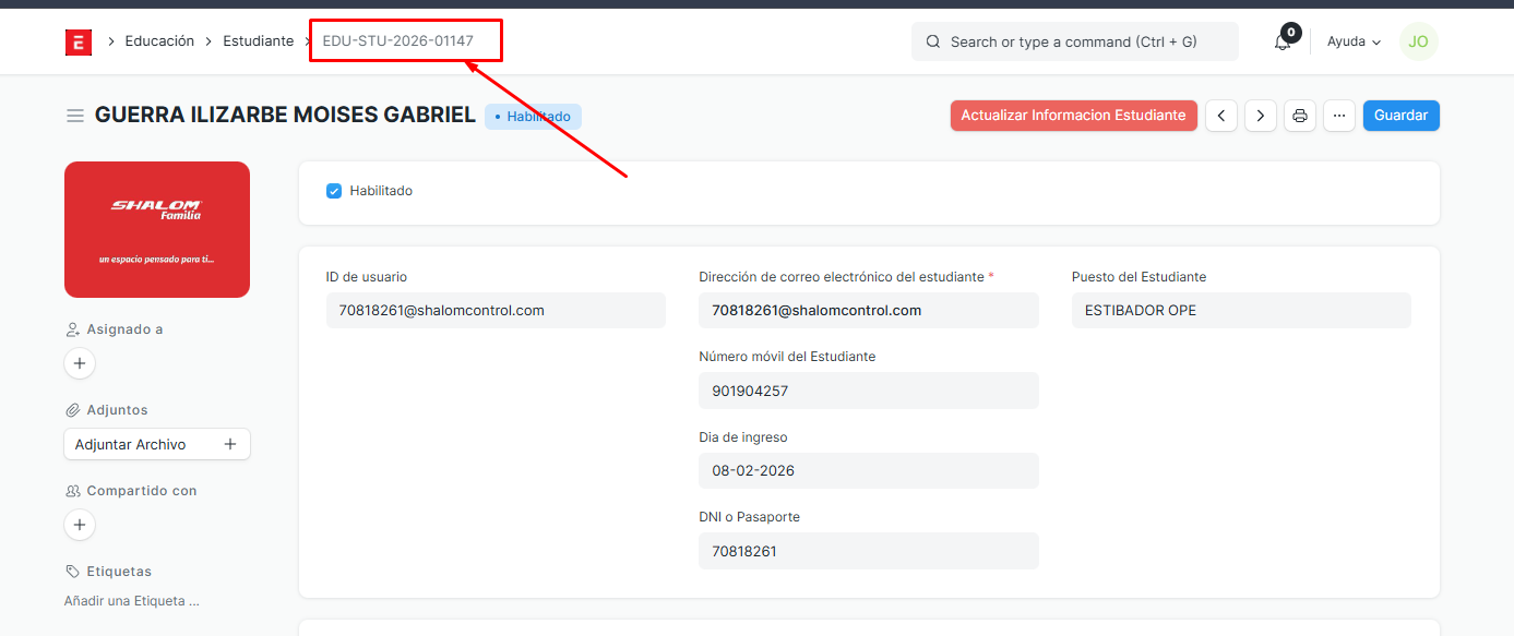 Retrocedemos al modulo de estudiante nuevamente: