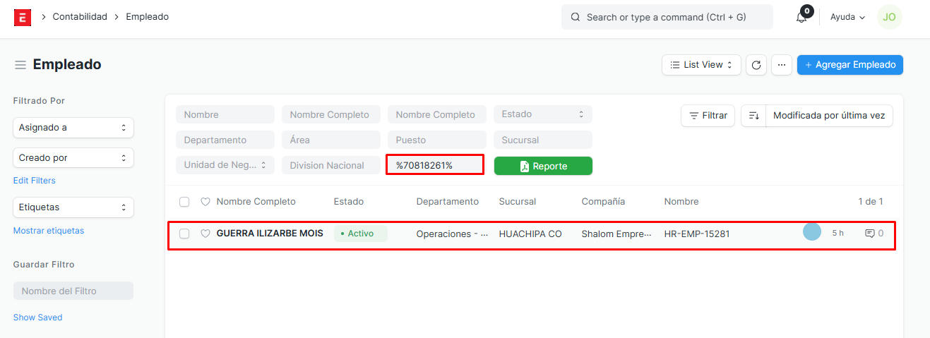 Y luego verificamos en el modulo de EMPLEADO