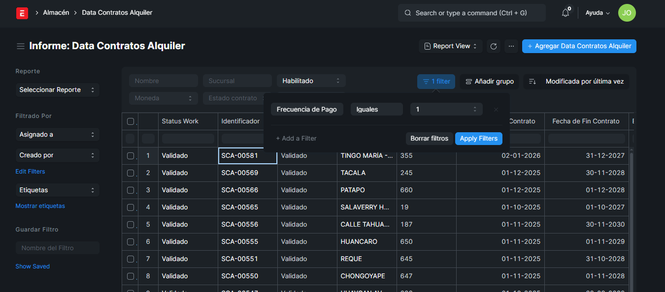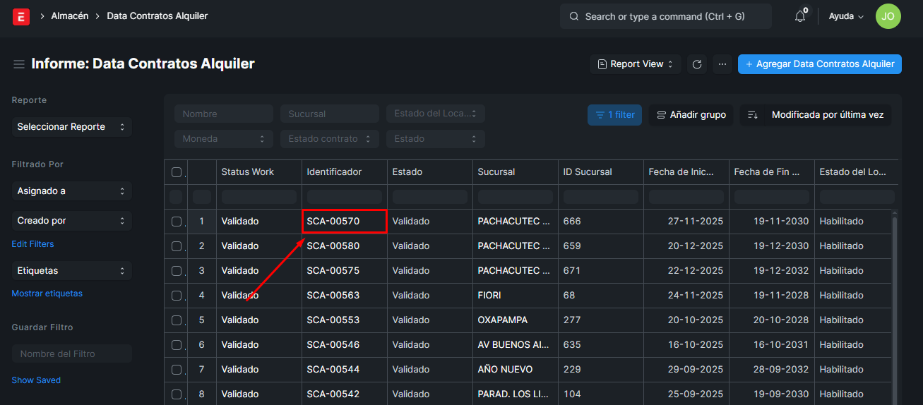 En la vista de reporte, daremos click en el Identificador y verificamos: