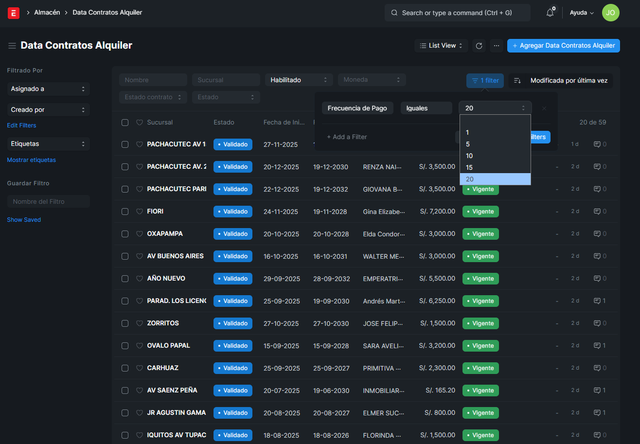 Aca tenemos que verifiicar si esta correctamente la fecha con la frecuencia, el periodo de pago tambien. Siempre tiene que estar en mensual.