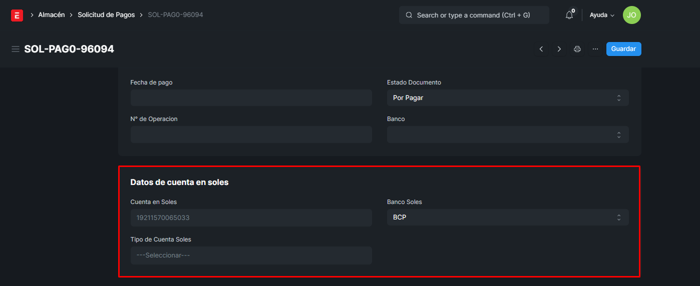 Debemos de verificar tambien que corresponda la cuenta y el banco en la solicitud de pago: