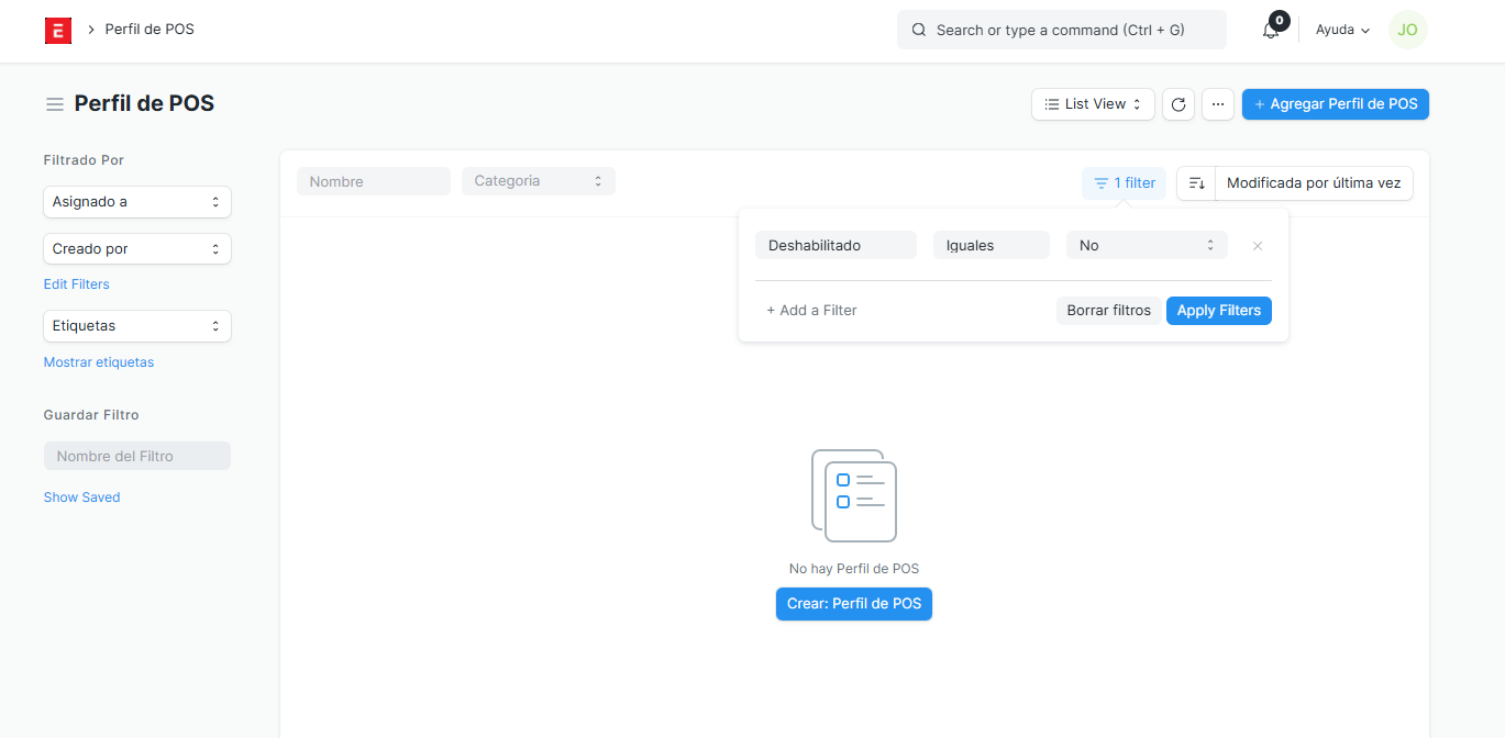 Localizar el modulo de Perfil de POS y agregaremos el siguiente filtro: