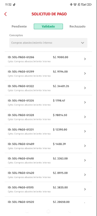 - Validados: Historial de solicitudes que ya recibieron el visto bueno.