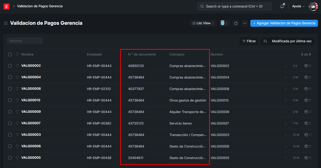 Visibilidad Restringida: El responsable solo podrá visualizar y gestionar solicitudes cuyos conceptos coincidan con los que tiene habilitados en el modulo "Validación de Pagos Gerencia".
