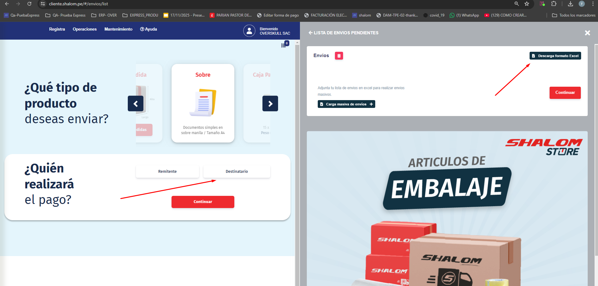 Documentación de interfaz: Registro de Envíos Corporativos (Shalom)