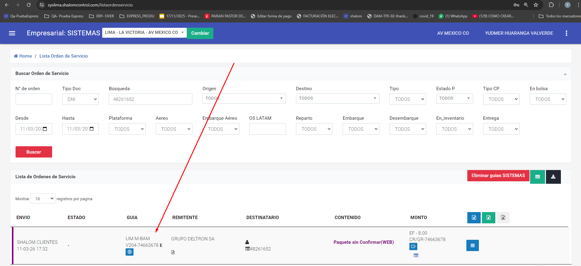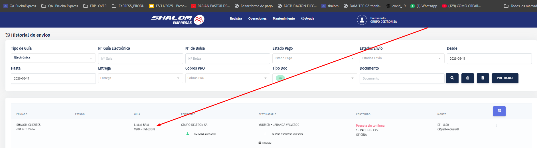 codigo(alfanumérico) y unaguia(numérica). Guarde estos datos para consultas futuras. - Para digitar Origen y Destino solo se debe digitar la ID