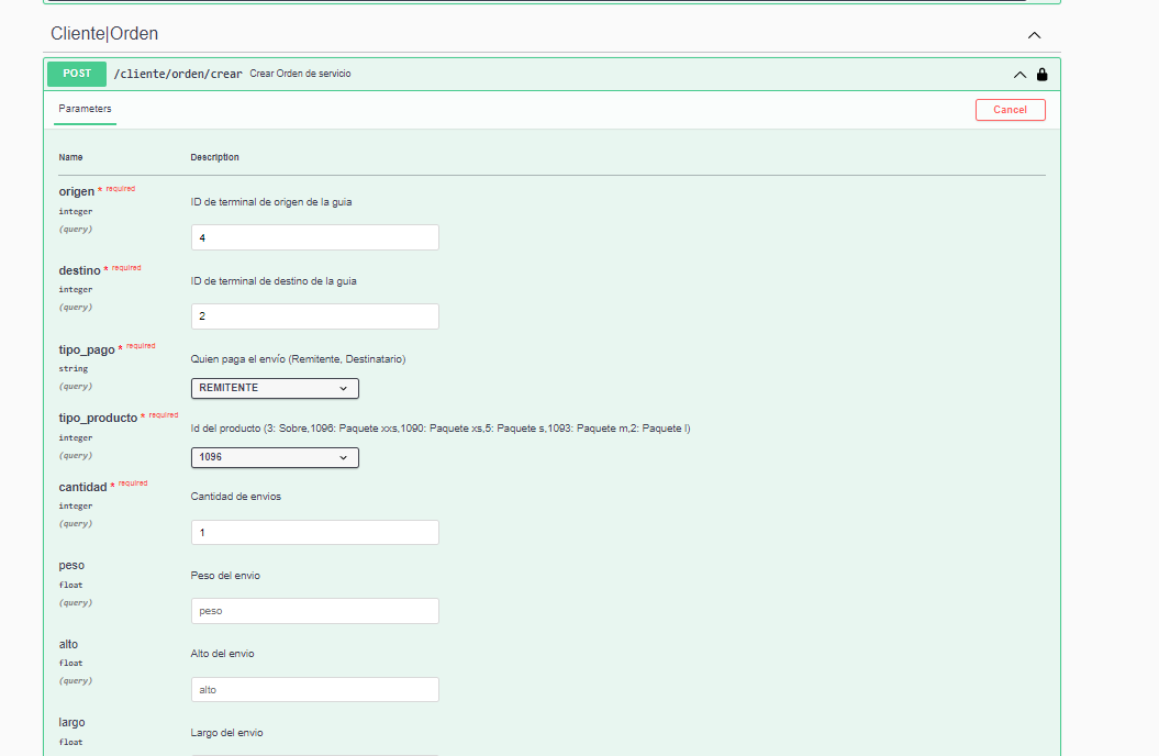 POST /cliente/orden/crear -