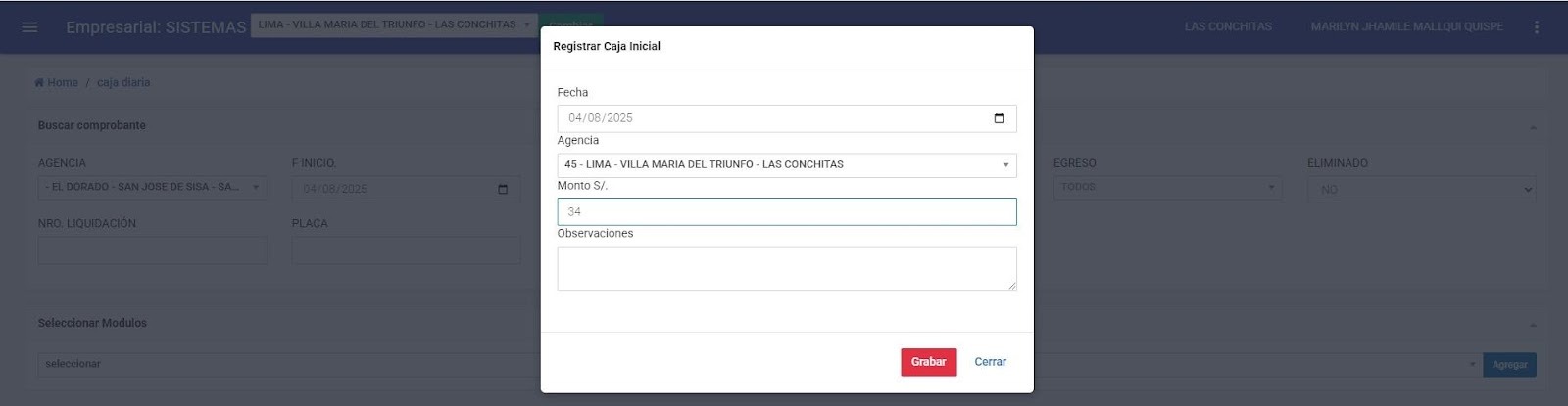 Primero, ingresamos al sistema empresarial, y en el apartado de generales, encontraremos la opción de caja diaria.