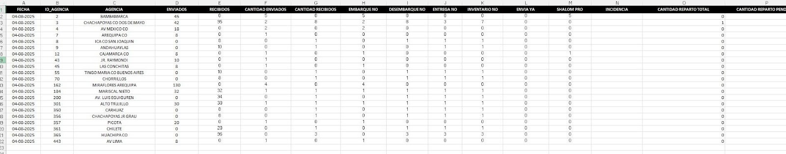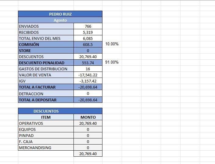 Montos envíos: De igual manera, se visualiza un excel de registros por plataformas.