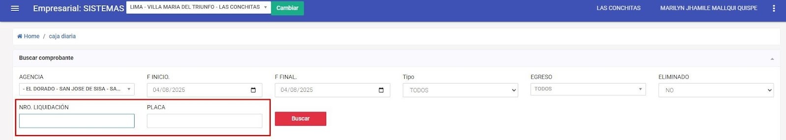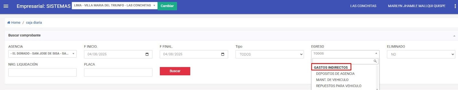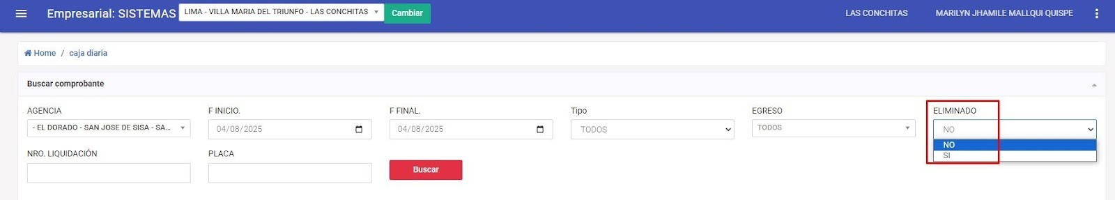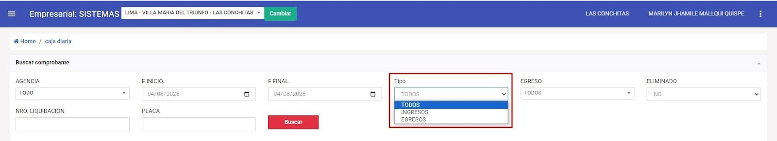 Agencia: Se podrá seleccionar la agencia que se desee visualizar los registros.