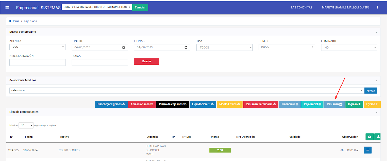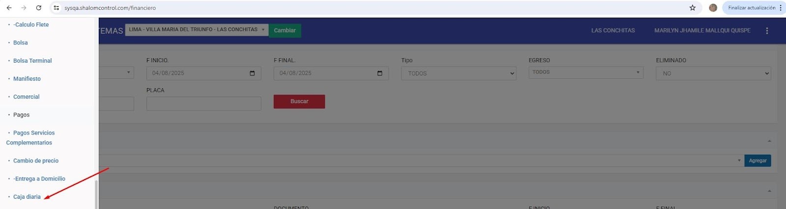 Módulo Caja diaria: https://syslima.shalomcontrol.com/financiero