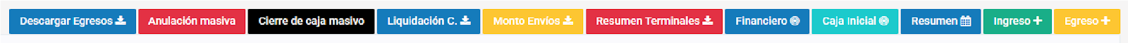 En tercera instancia, dentro de la vista de caja diaria, tendremos los siguientes botones: