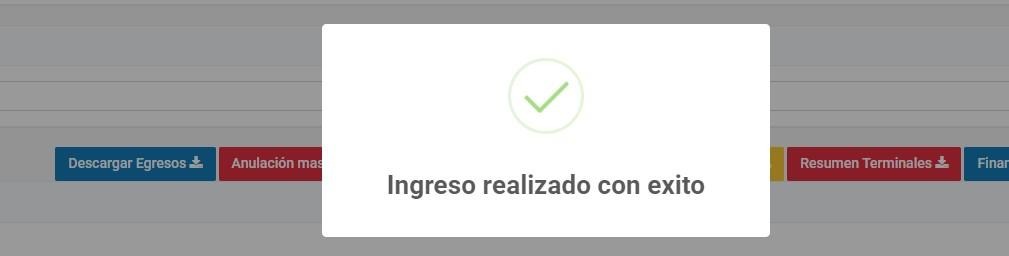 Al registrar un ingreso nos saldrá el siguiente mensaje: