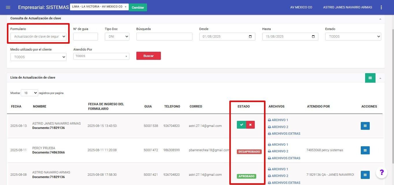 El presente documento describe de manera detallada el proceso de Clave de Seguridad, enfocándose en el registro y manejo de los formularios relacionados con la actualización y liberación de claves. Se explicará paso a paso cómo realizar el registro de los formularios, así como el tratamiento que deben recibir después de su ingreso al sistema. Además, se detallarán los distintos estados de los formularios, tales como Pendiente, Aprobado y Denegado, con el fin de garantizar un manejo adecuado y transparente de la información.