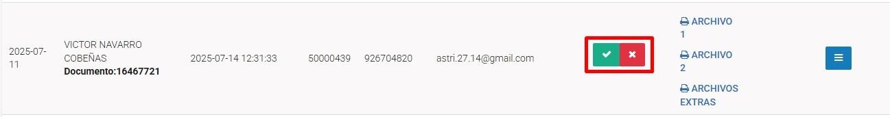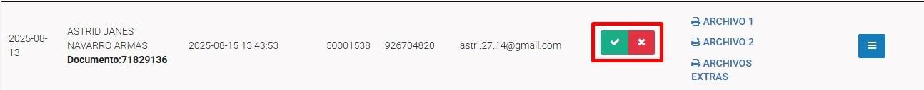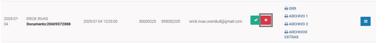 Para que un formulario pase al estado desaprobado, se deberá marcar manualmente la X en color rojo.