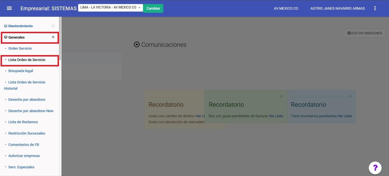 En el módulo GENERALES => LISTA ORDEN DE SERVICIO