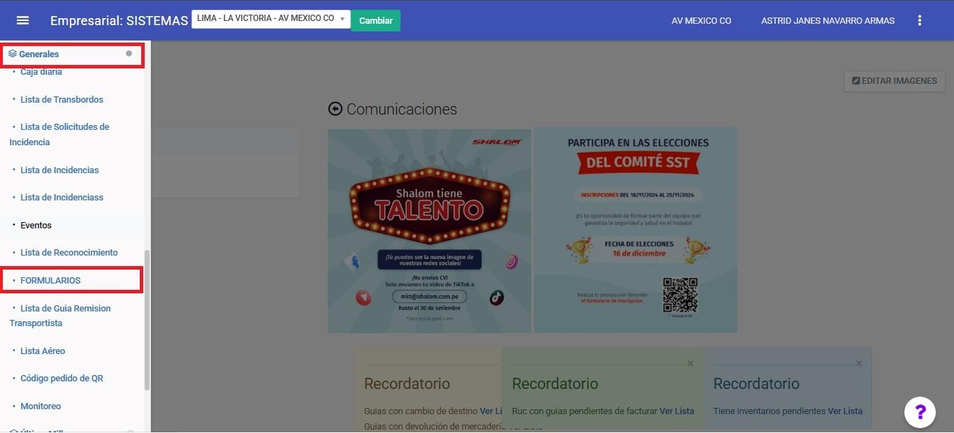 Módulo GENERALES => FORMULARIOS