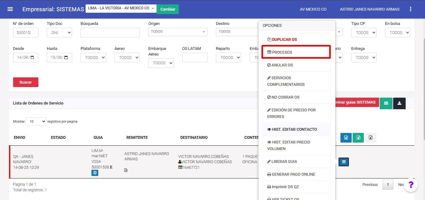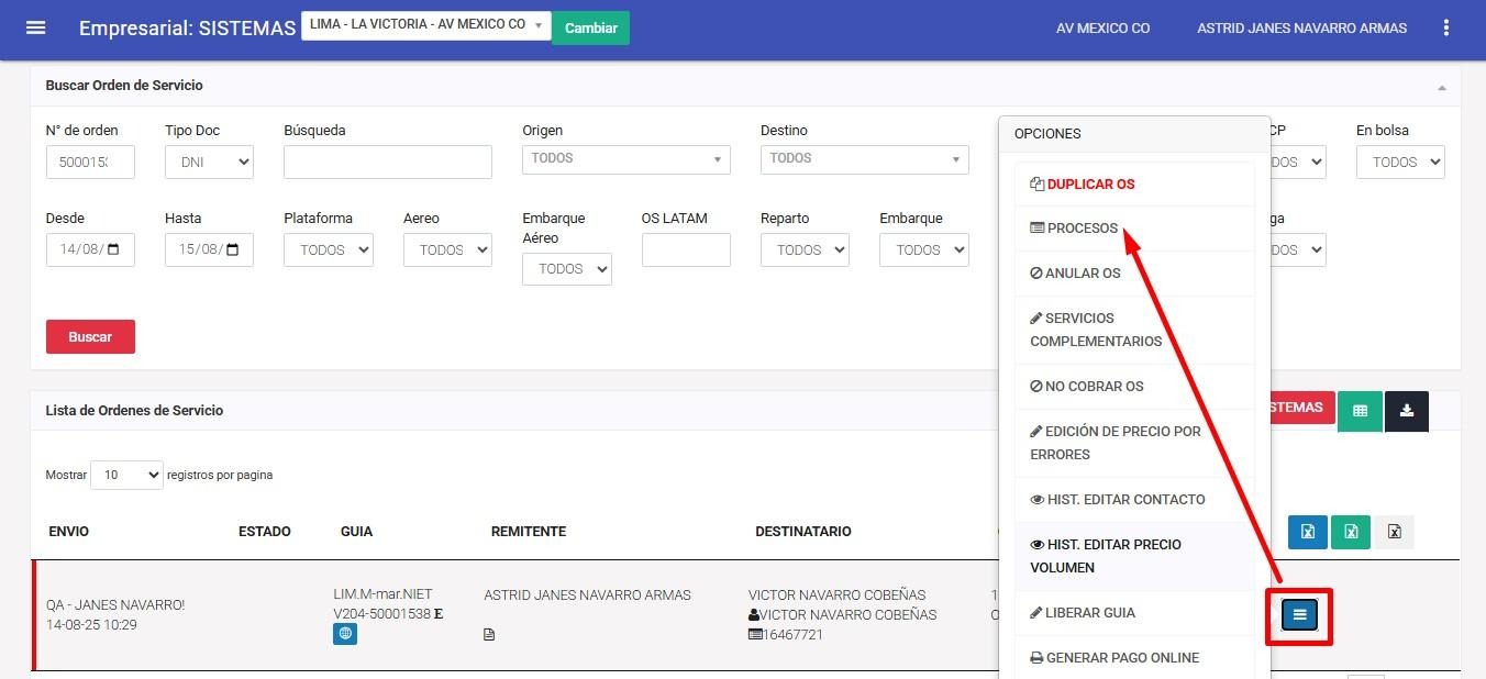 En este menú seleccionamos la opción Procesos.