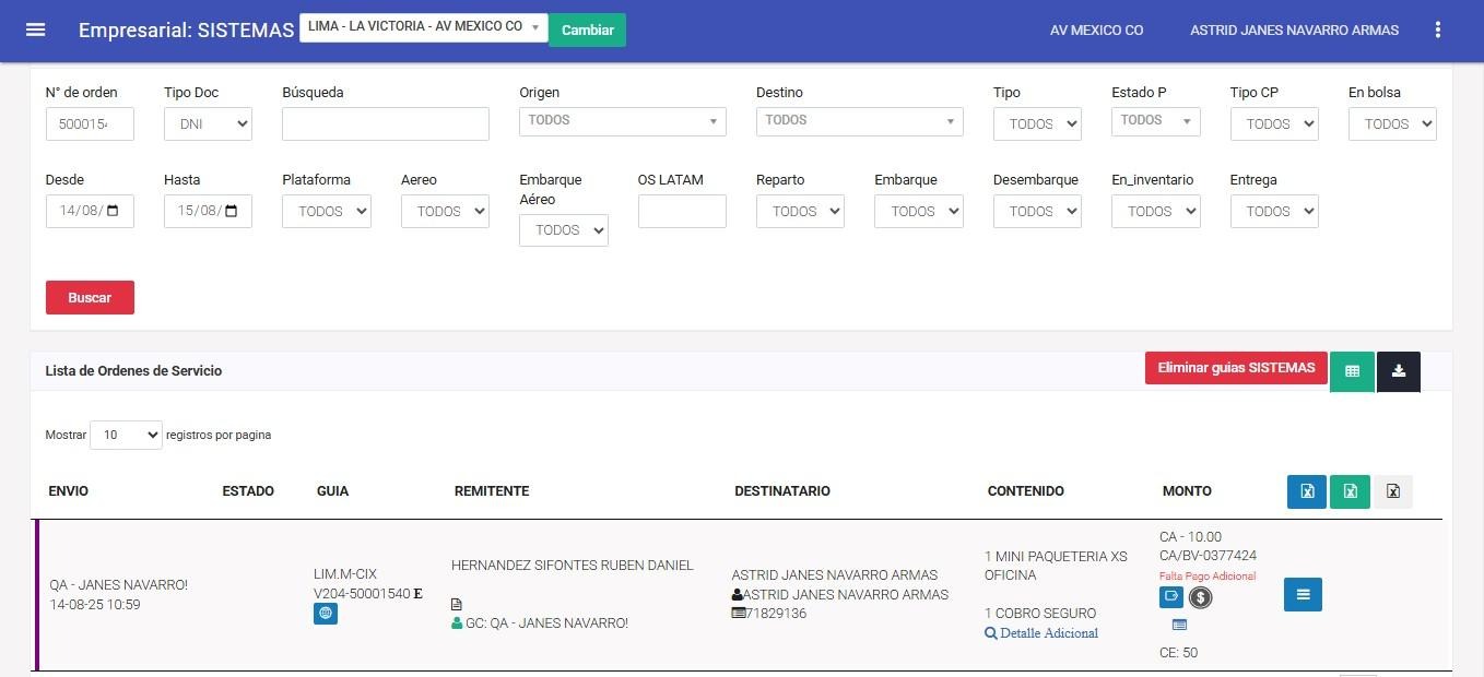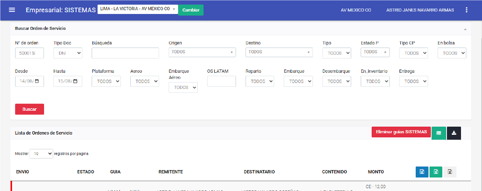 Una vez seleccionado el tipo de formulario, podrá utilizar el resto de los filtros disponibles: N° de guía, Documento, Rango de fechas, Estado, Medio utilizado por el cliente y Atendido por.