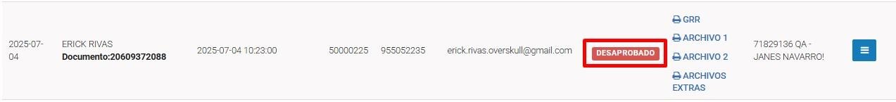 Posteriormente, el estado del formulario se actualizará a desaprobado.