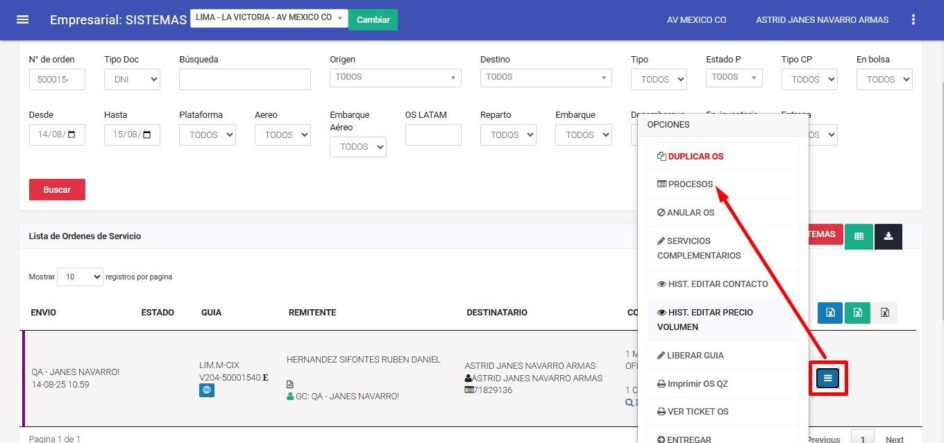 Ingresamos al módulo Lista de Órdenes de Servicio y filtramos la OS a la que se le habilitará el formulario web.