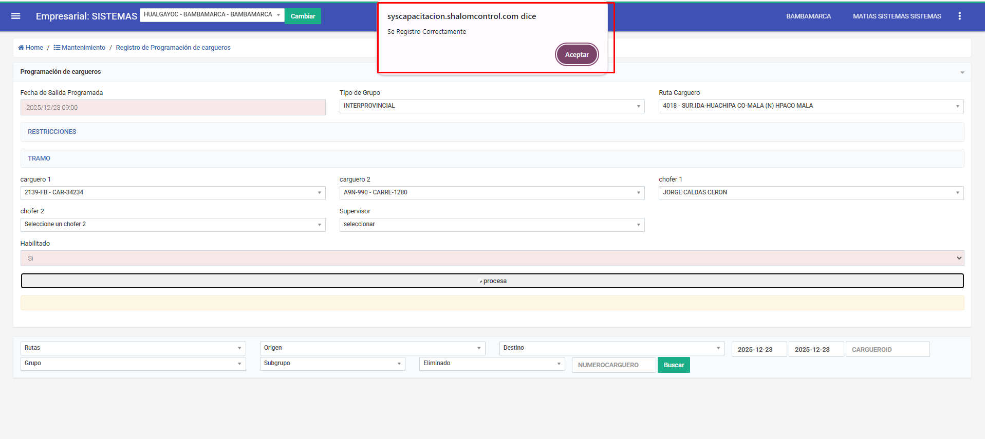 Módulo carguero: https://syscapacitación.shalomcontrol.com/mante/cargprogramado