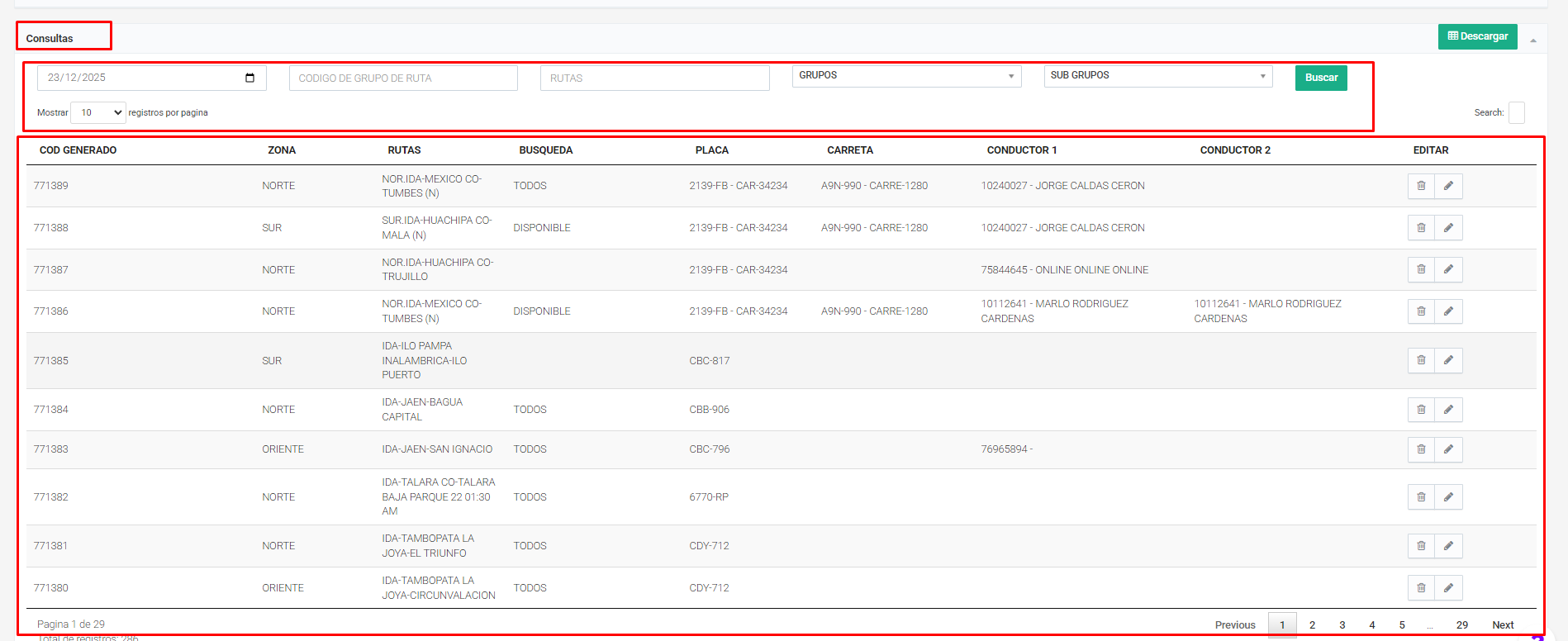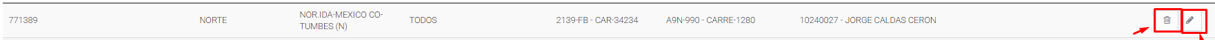 Se podrá consultar los registro que hayamos hecho al GENERAR RUTAS, así mismo se podrá editar la ruta ya creada o eliminarla.