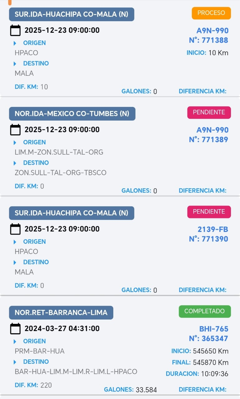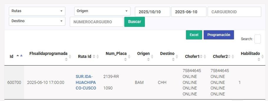 Esta opción tiene relación con el proceso de la APP CHOFERES Y A LA PROGRAMACIÓN DE CARGUEROS, ya que de esta manera visualizamos el proceso de la ruta.