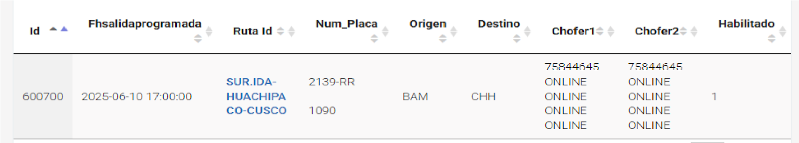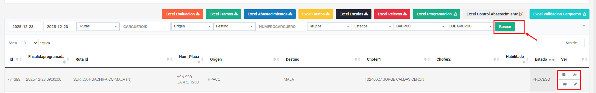 Donde para ingresar a esa vista, filtramos la búsqueda hasta encontrar la ruta y damos al boton que tiene el icono del ojo