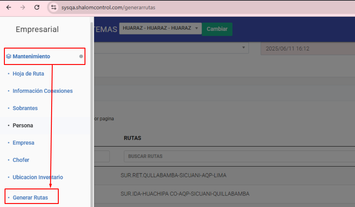 En el módulo de MANTENIMIENTO => GENERAR RUTAS