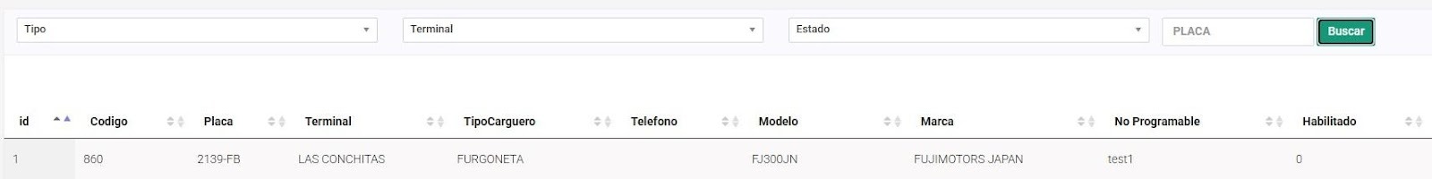 Flota : Módulo donde se registrar y se visualiza todo el conjunto de vehículos