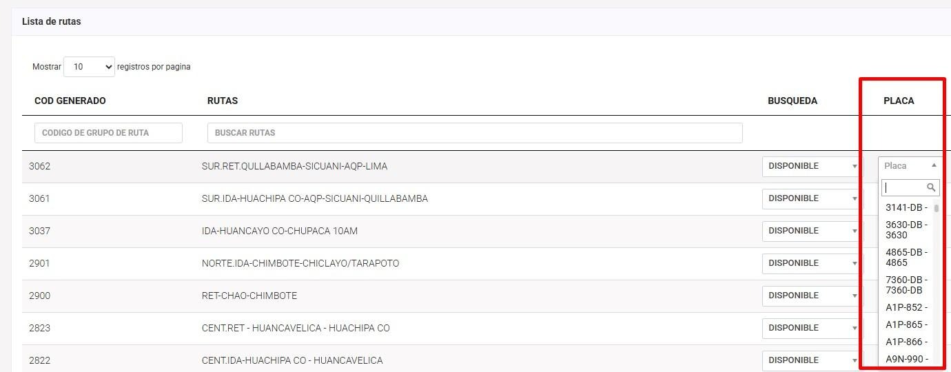 Carguero 1: Aqui se coloca la "PLACA" de la sección de "GENERAR RUTAS"
