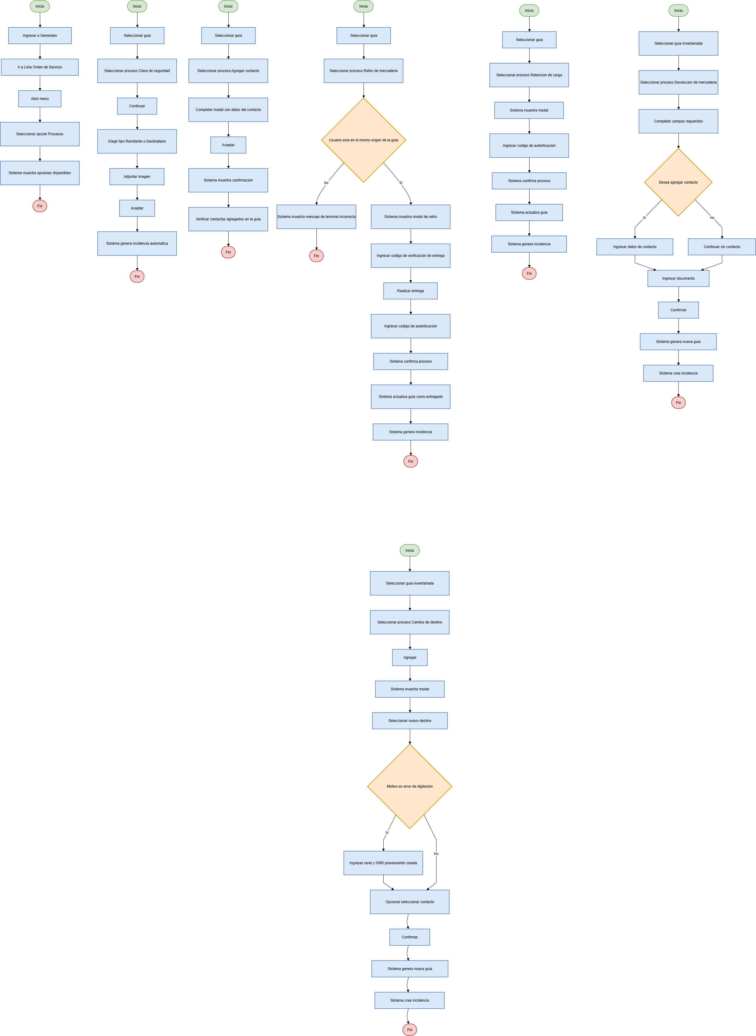 Control de Procesos: Verificar que la guía esté creada bajo las condiciones de cada opción.