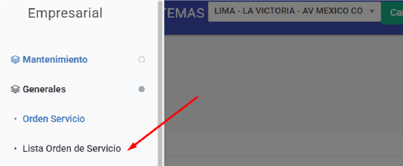 Primero, ingresamos al apartado Lista Orden de Servicio.