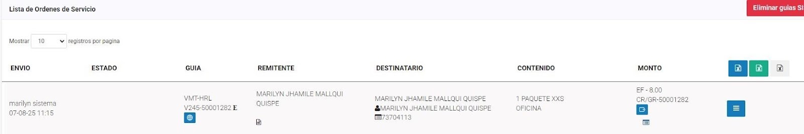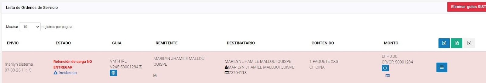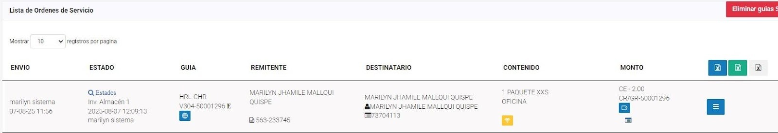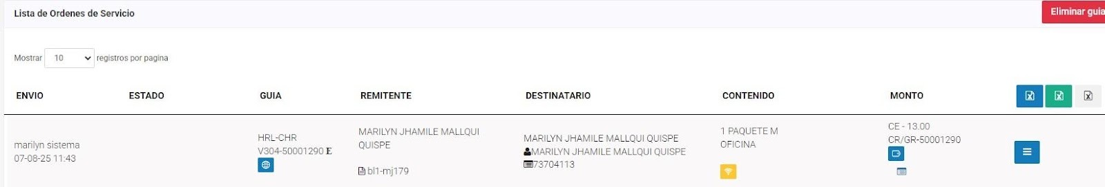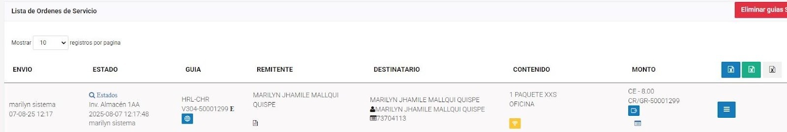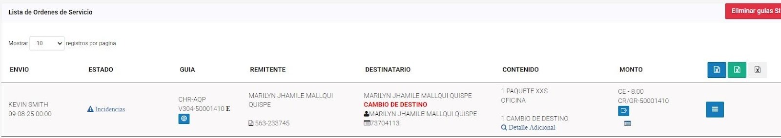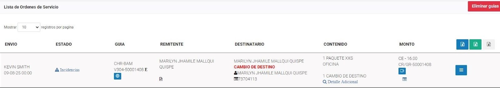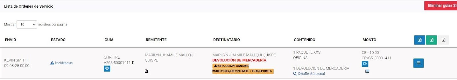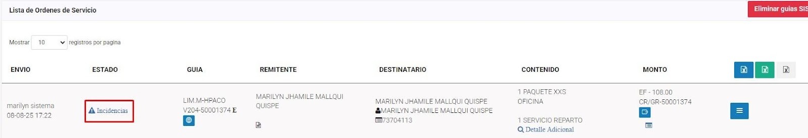 Ahora visualizamos la nueva guía con la incidencia creada.