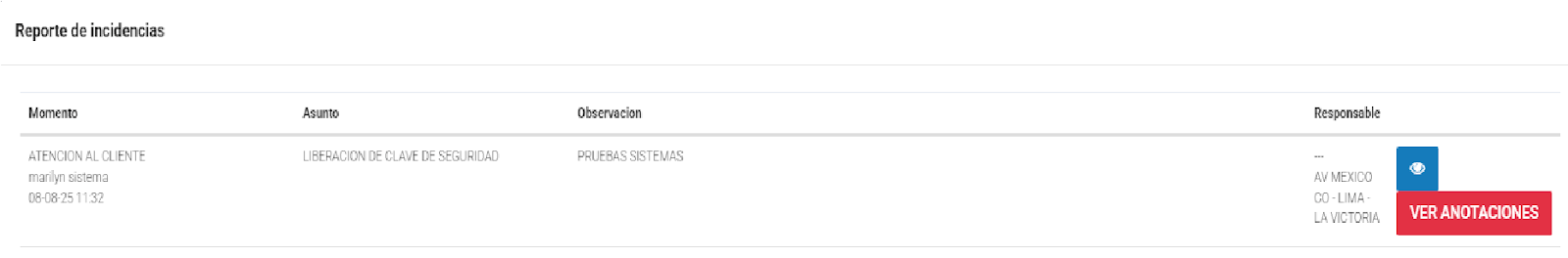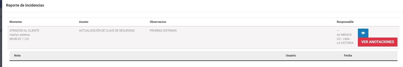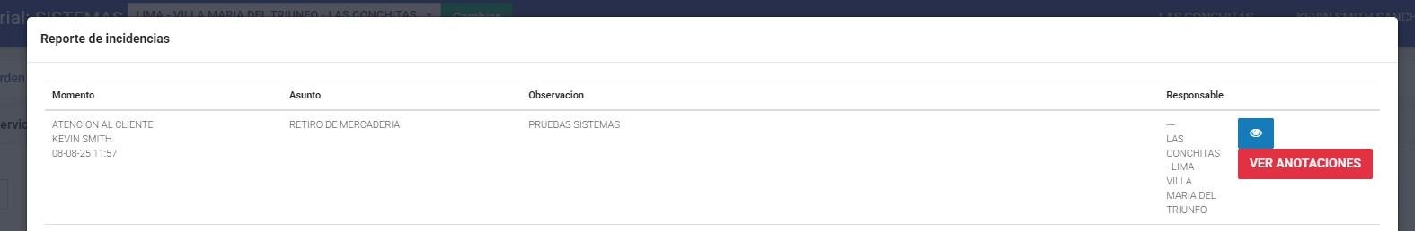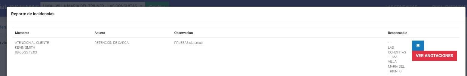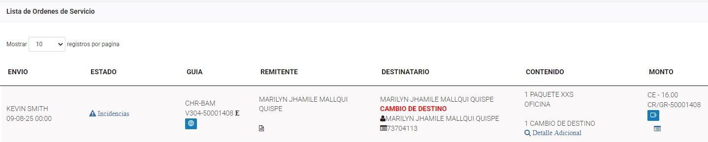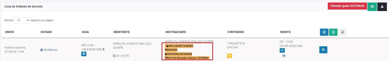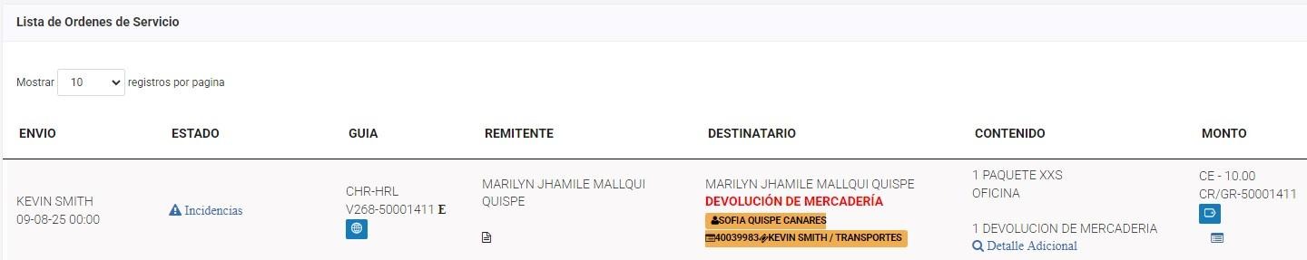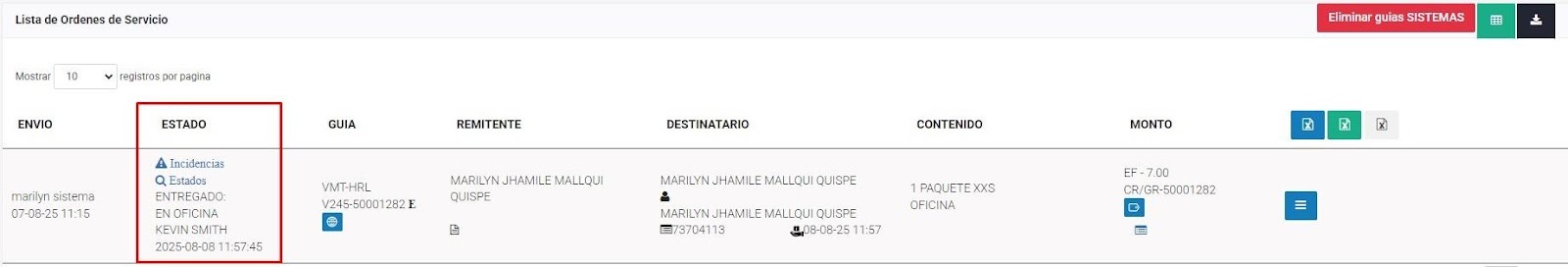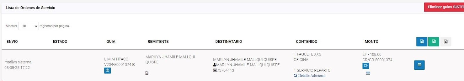Ahora visualizamos la nueva guía con la incidencia creada.