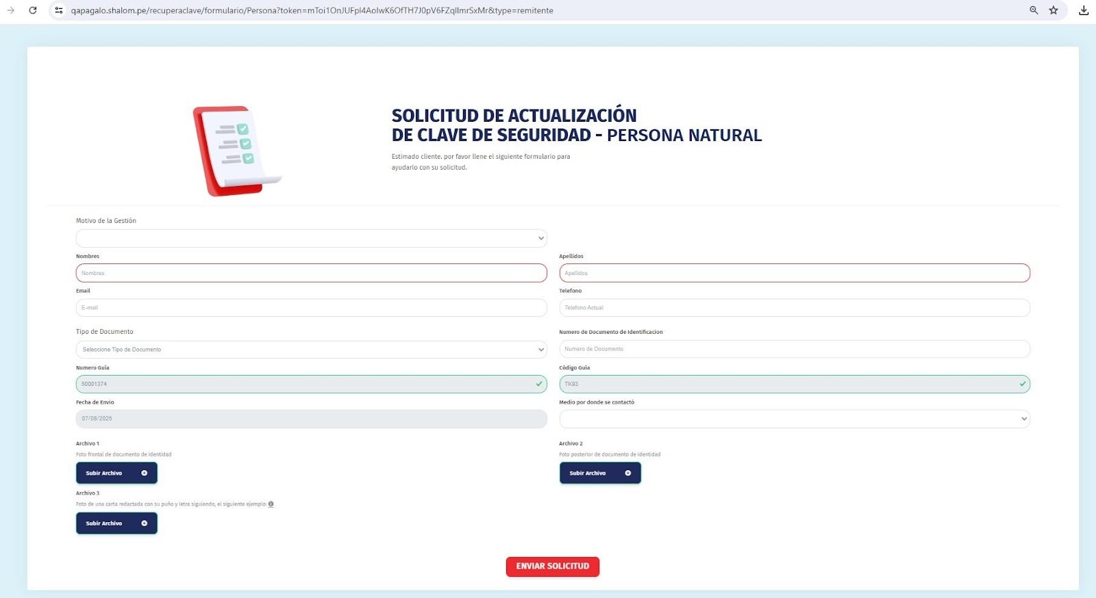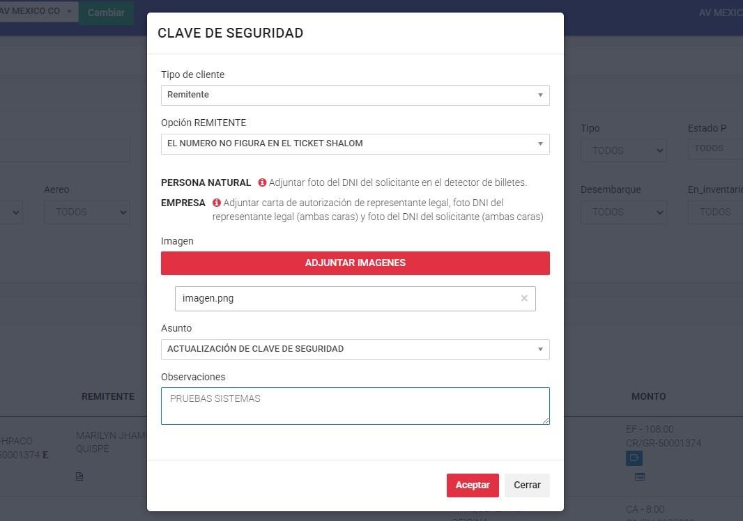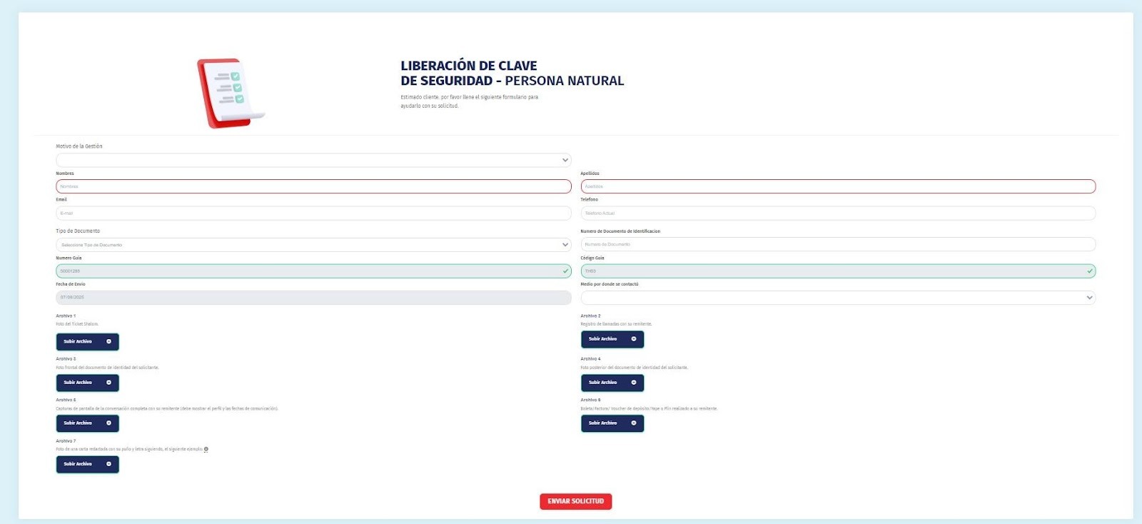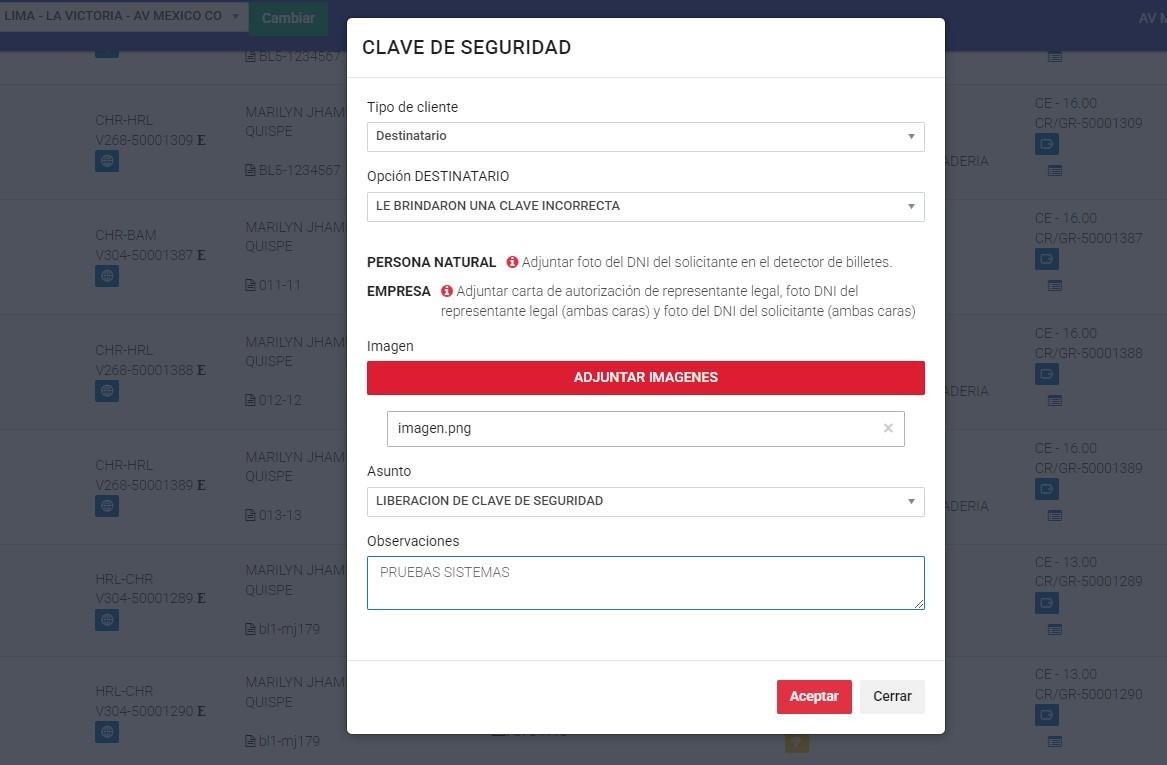 Se visualiza lo siguiente cuando se realiza un proceso de clave de seguridad.
