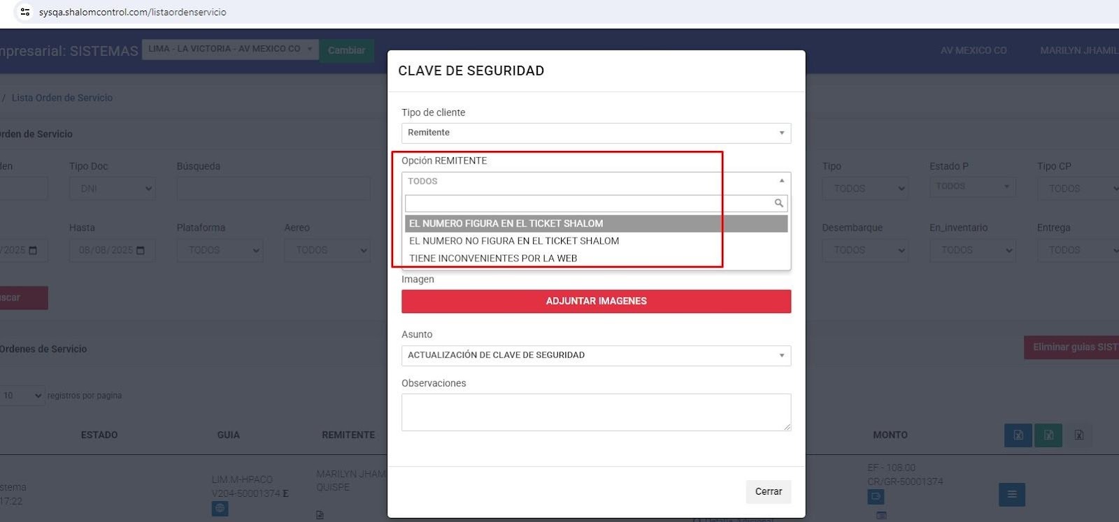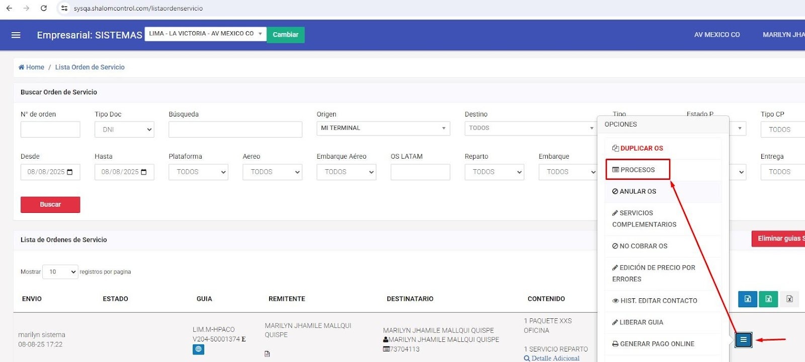 ● Módulo Lista orden de servicio: https://sysqa.shalomcontrol.com/listaordenservicio