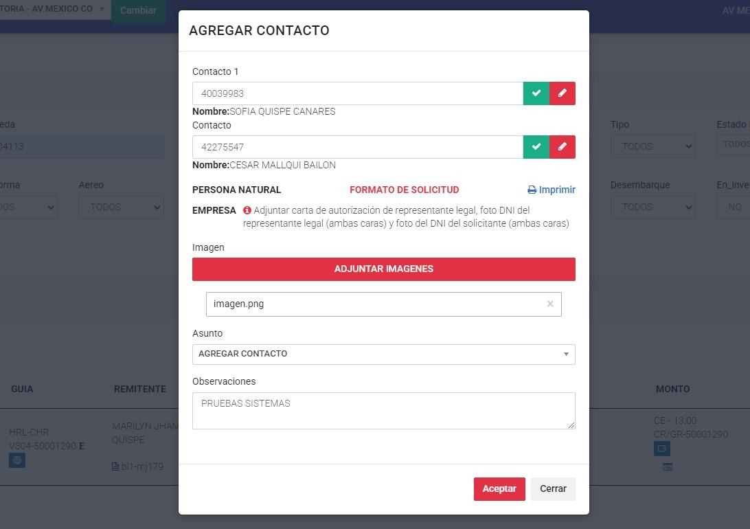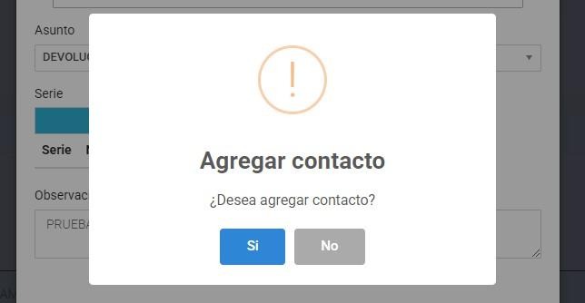 Se visualiza lo siguiente cuando se realiza un proceso de agregar contacto.
