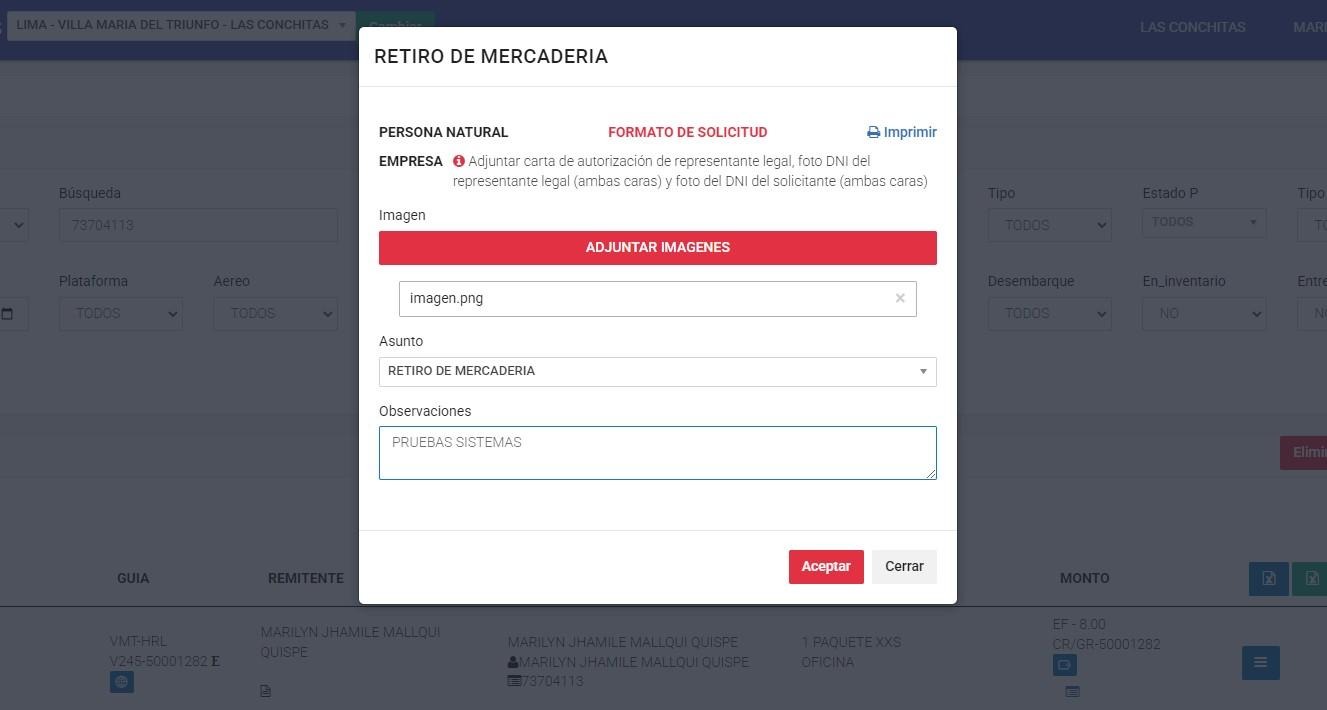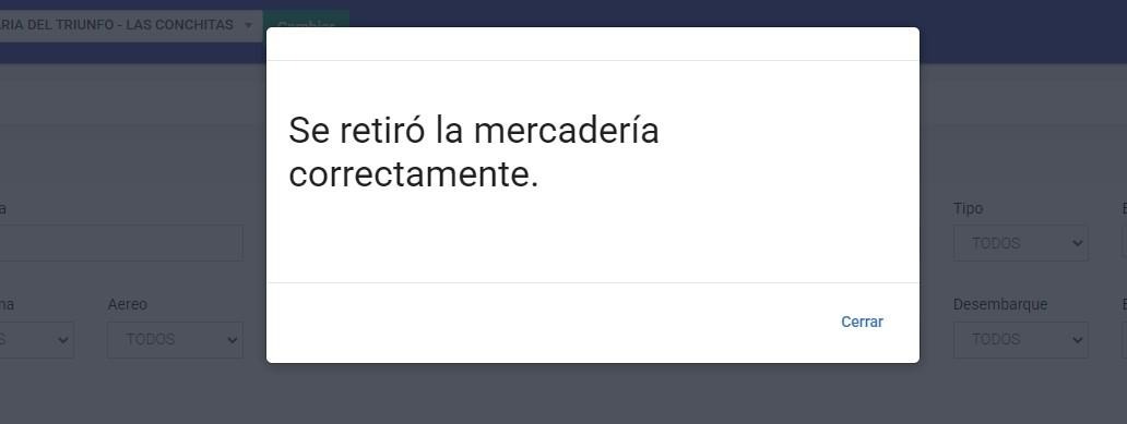Se visualiza lo siguiente cuando se realiza un proceso de retiro de mercadería.