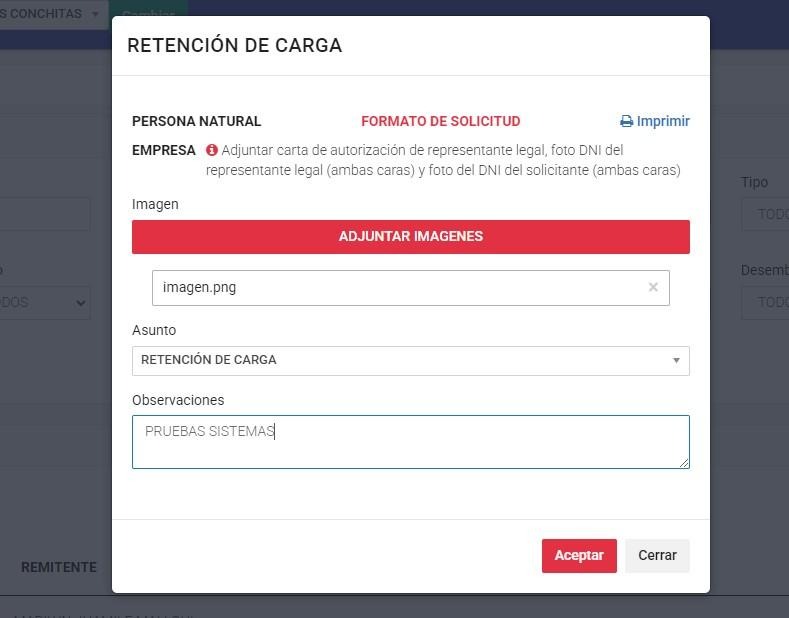 Se visualiza lo siguiente cuando se realiza un proceso de retención de carga.