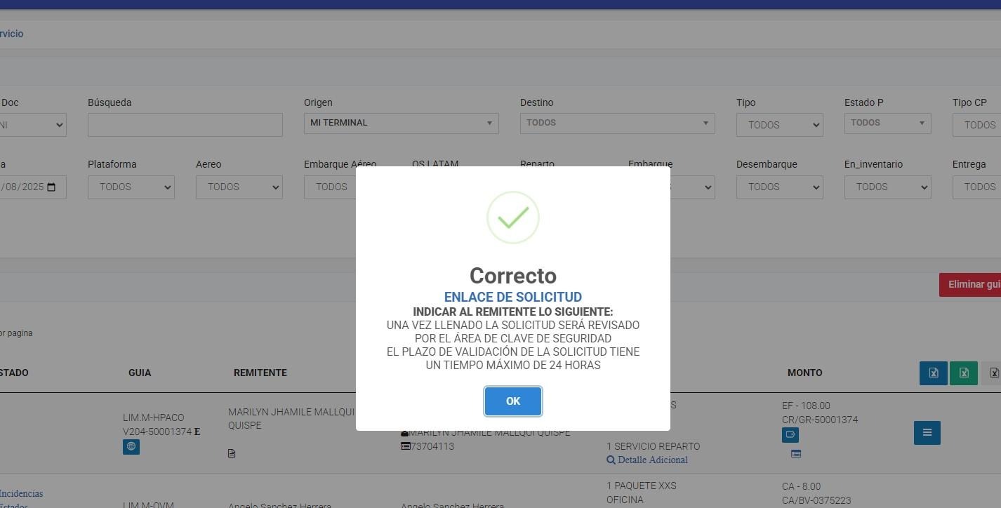 Nos saldrá el siguiente mensaje con la nueva guía.