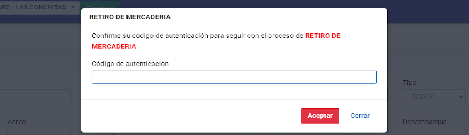 ○ Retiro de mercadería: Código de verificación de entrega y código de autenticación de inicio de sesión.