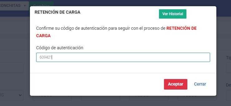 ○ Retención de carga: Código de autenticación de inicio de sesión.