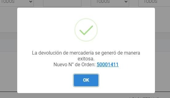 Se visualiza lo siguiente cuando se realiza un proceso de devolución de mercadería.