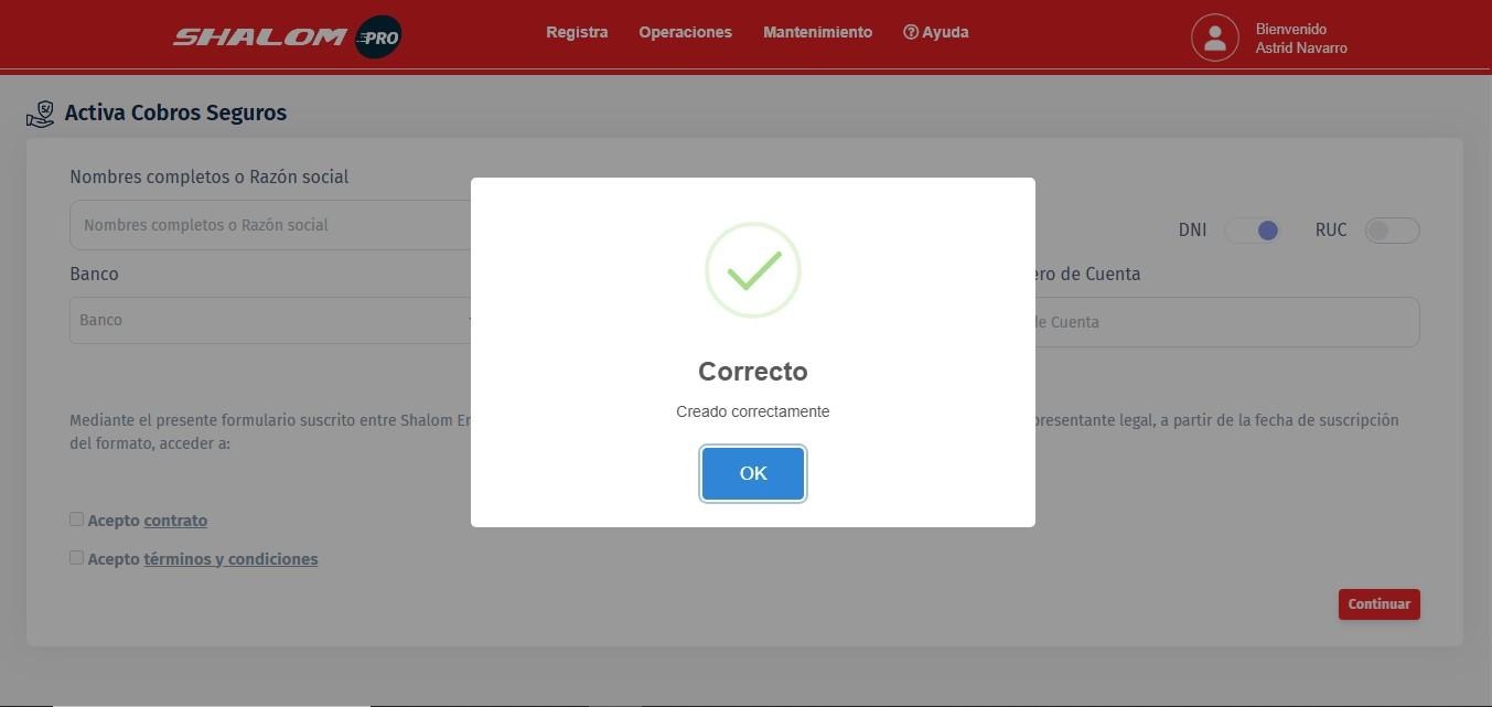 Plataforma Shalom Pro => Operaciones => Cobros Seguros