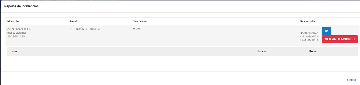 Se puede ver que muestra cómo incidencia, la información ingresada desde el modal de solicitud.